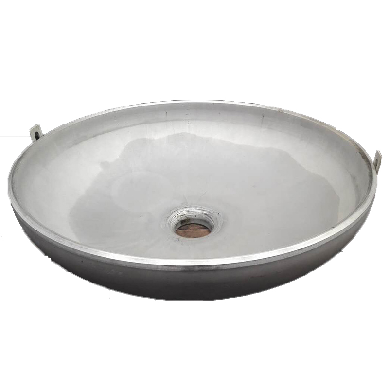 碟形封頭又稱帶折邊球形封頭,又名蝶形封頭。由一個球面、一個某一高度的圓筒直邊和連接以上兩個部分的曲率半徑大小小于球面半徑的過渡部分組成。碟形封頭為一個連續(xù)曲面,在三部分連接處,經(jīng)線曲率半徑有突變,由于曲率變化, 因而存在著彎曲應力。彎曲應力和拉伸應力疊加的結果,使這部分的應力突出于其他部分。與橢圓形封頭相比,應力分布不如其均勻,但加工較之容易,因而在工程使用中并不理想。但當橢圓形封頭的模具加工有困難時,則用碟形封頭代替。